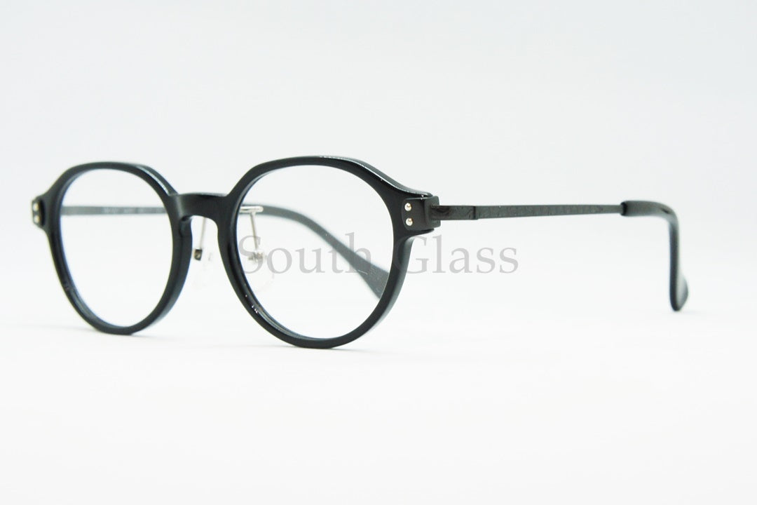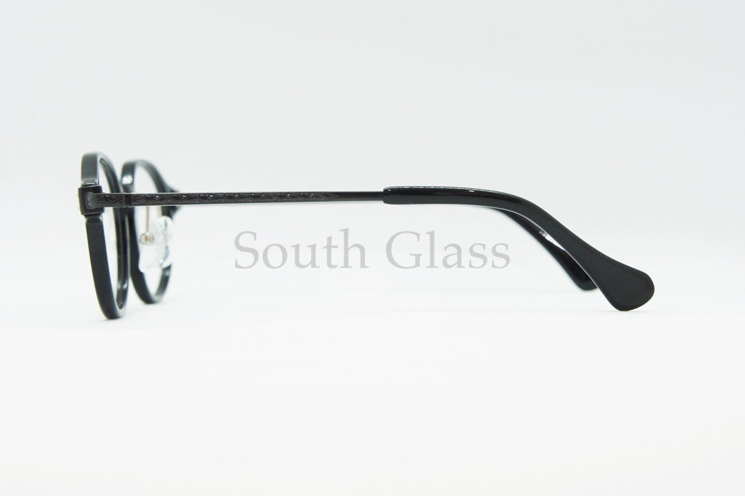 ただの丸メガネではなく、フロントの上部をスパッとストレートにデザインして、王冠のようなデザインにしています。