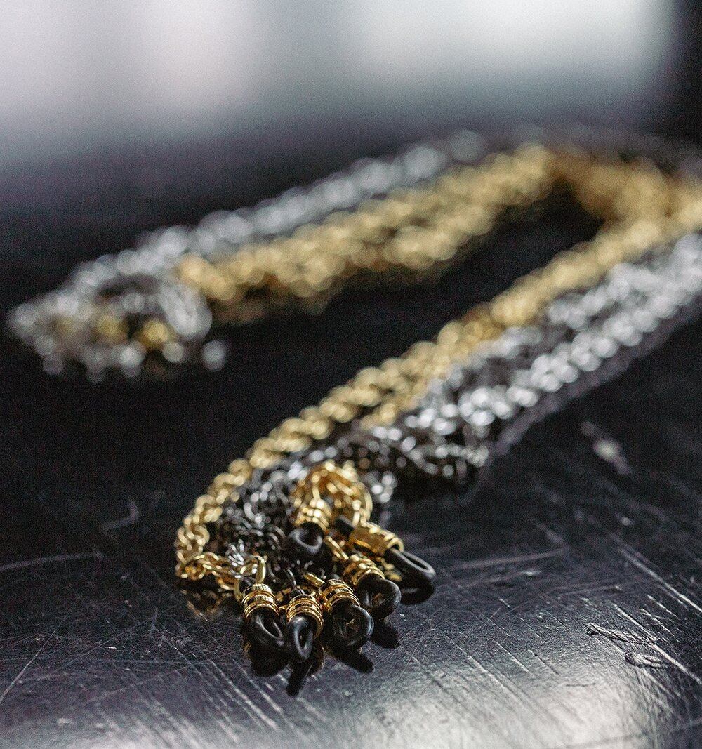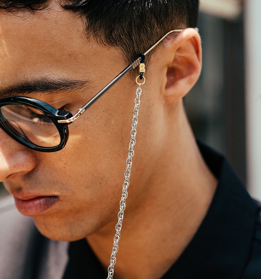 シンプルで高級感のあるメタルチェーンのグラスコード。