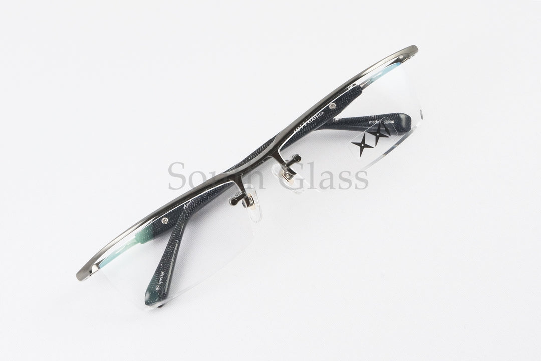 レンズを一点で止めており、大胆なカットが施されたテンプルとマツケリ製のモダン「レンズも含めてデザインである」という設計思想を基にキリッとシャープでクールなメタルブローに仕上がっております。